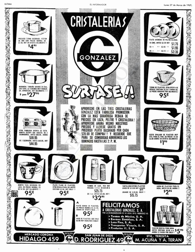 El afecto extendido al ámbito familiar se reflejó también en el aprecio a los Papás de Chencho quienes vinieron desde Vallecillo, en un par de ocasiones, a inauguración de tiendas de Cristalería en Guadalajara y ahí tuvieron Lico y Olga el gusto de conocerlos. Posteriormente acudieron a Vallecillo, ese poblado del norte de Nuevo León de donde eran ellos originarios, a la celebración de sus 50 años de matrimonio.